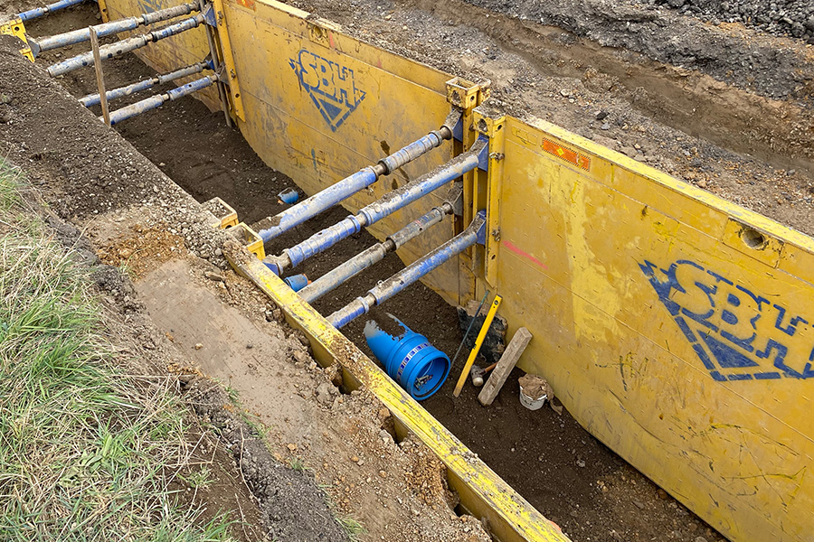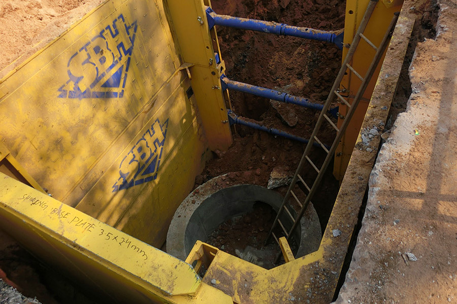 Die Manholebox kommt zum Einsatz, wenn im laufenden Leitungsgraben eine einmalige Verbreiterung (beispielsweise durch einen Schacht, Schweiß-/Anschlussarbeiten, etc.) notwendig wird. Der Plattenkörper springt an jeder Grabenseite 0,40 m U-förmig zurück und schafft somit 0,8 m mehr Arbeitsraum. Vor und hinter dem Schacht kann mit den gängigen Verbausystem fortgefahren werden.