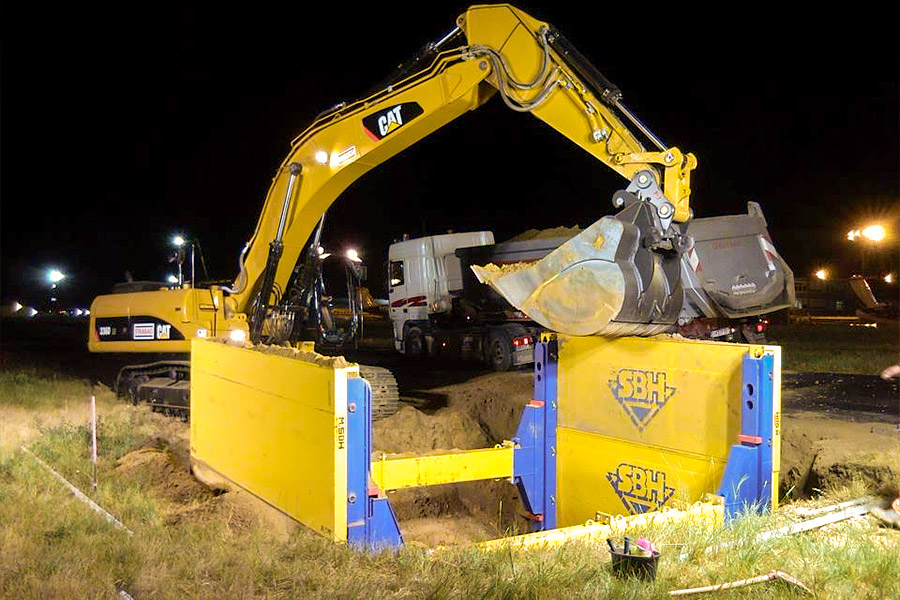 - Ein- und Rückbau mit Mobil- oder Kettenbagger 9,0-13,0 to (mit Aufsatzelement/Überziehprofil/Maxibox 18,0-30,0 to)