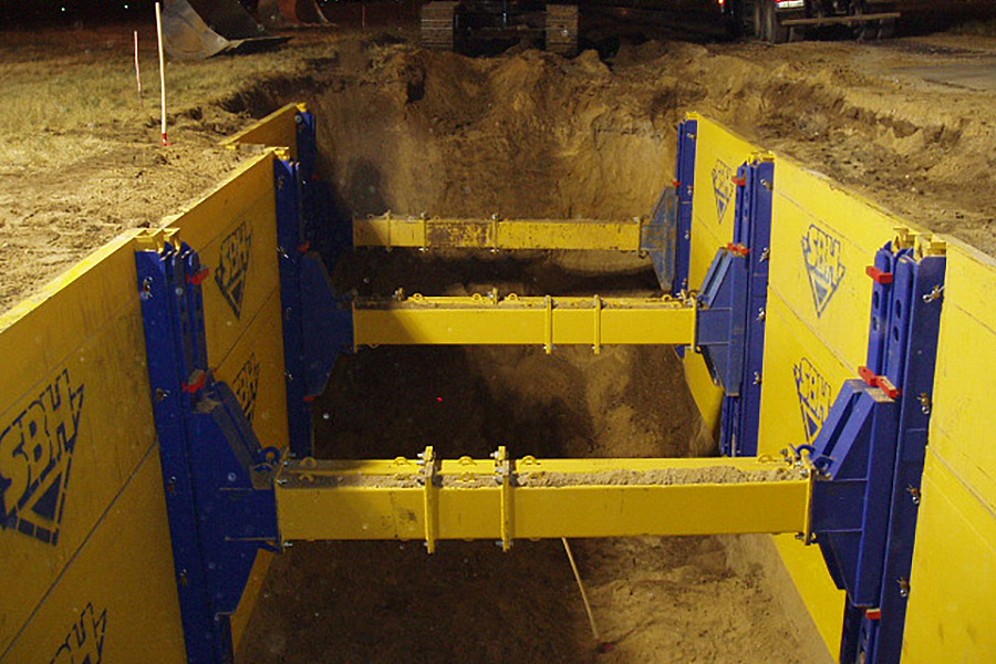 Die robuste und langlebige Verarbeitung mit zusätzlich verstärktem Kopf- und Schneidenbereich trotzt selbst höchsten Belastungen beim Eindrücken und Absenken auf der Baustelle und ermöglicht auch das Abschälen von festem Erdreich. Durch die gelenkig gelagerte Strebe wird das Absenkverfahren auch bei nicht standfesten Böden gewährleistet. Eine schnelle, sichere und wirtschaftliche Handhabung wird durch die Kombination mit einem Verbaugreifer ermöglicht.